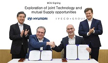 韓国の現代自動車とイタリアの商用車メーカー、イベコ(IVECO)は7日、車両技術の共有と共同調達、相互供給の協力の可能性を探ることを目的とする覚書(MOU)に調印したと発表した。両社が部品やシステム、プラットフォーム(車台)分野などで協力する可能性を評価するためのもので、相互に関心がある領域は、燃料電池(FC)システムを含む電動パワートレインとプラットフォーム、商用車の自動運転化とコネクティビティーとされている。