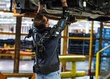 EksoVestは電力を必要としない機械式のパワードスーツで、重量は約8ポンド(約3.6キログラム)。バックパックのように背負って装着し、頭上での作業に従事する工員の負担を軽減する。身長5.2フィート(約158センチメートル)から6.4フィート(約195センチ)まで装着できる。